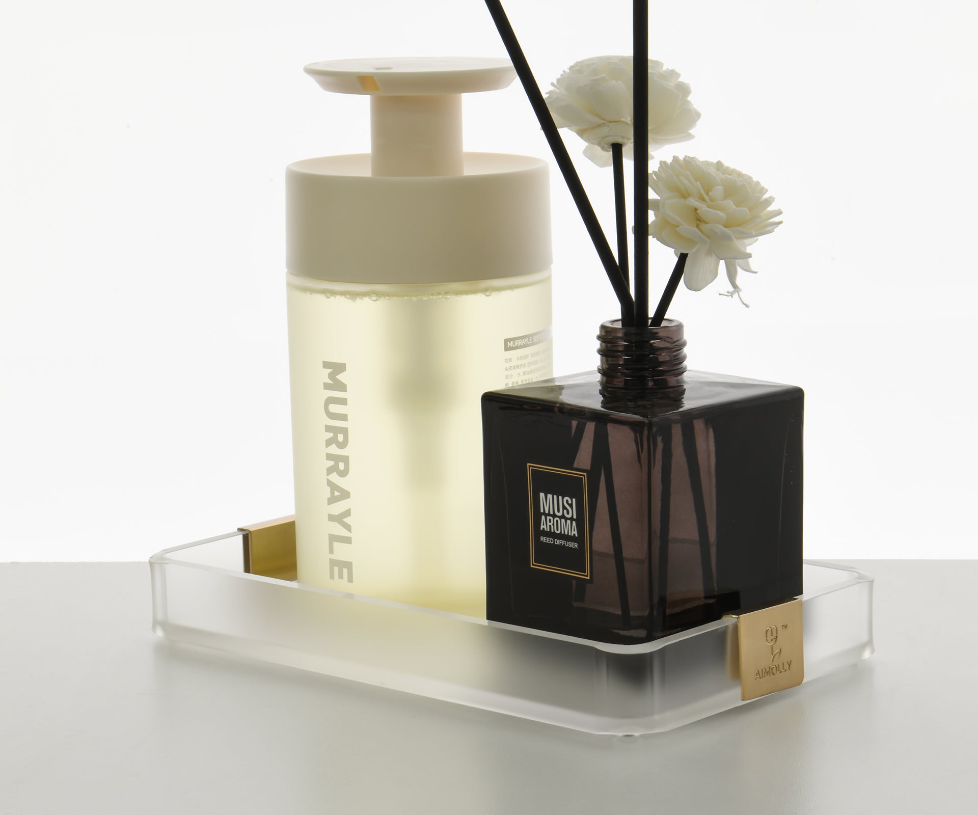 AIMOLLY acrylic storage tray washstand cup holder is suitable for storage trays for cosmetics, stationery, jewelry display, etc.(Model AML-030/031)