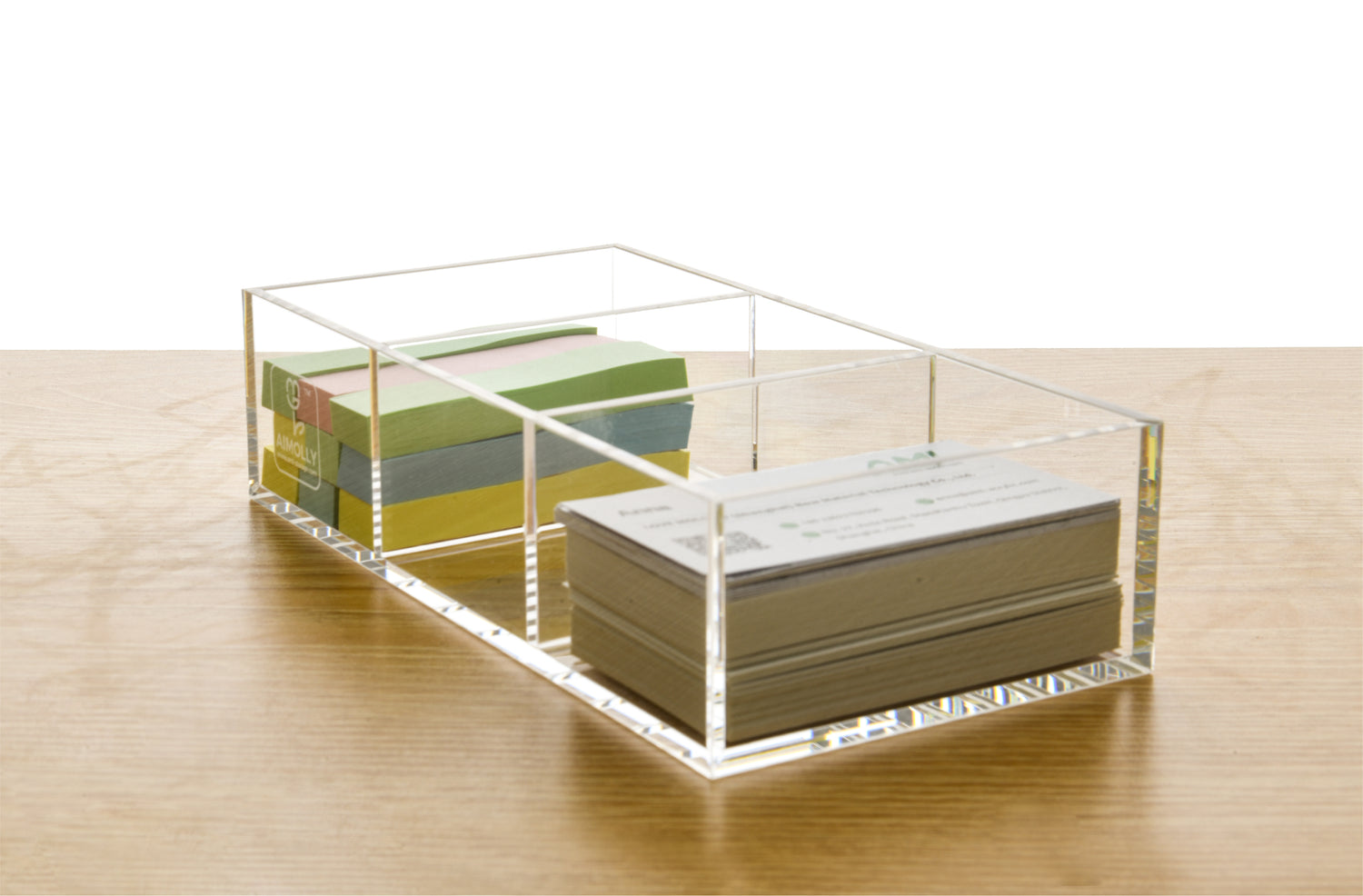 AIMOLLY acrylic transparent storage box with multiple compartments and large capacity student stationery box office storage rack stationery box note storage.(Model AML-023/046)