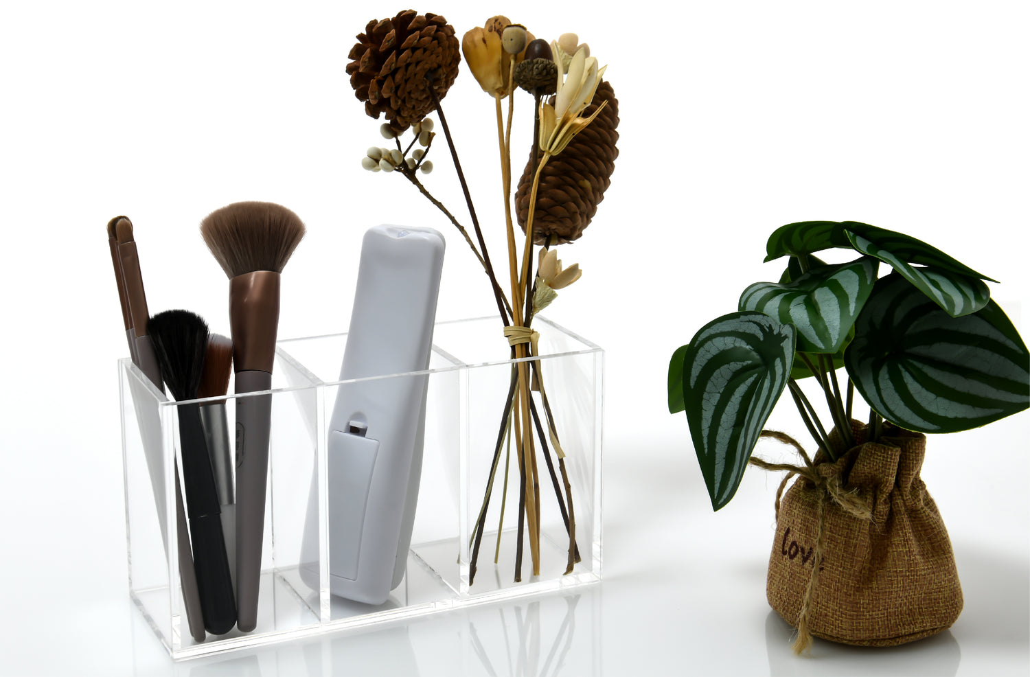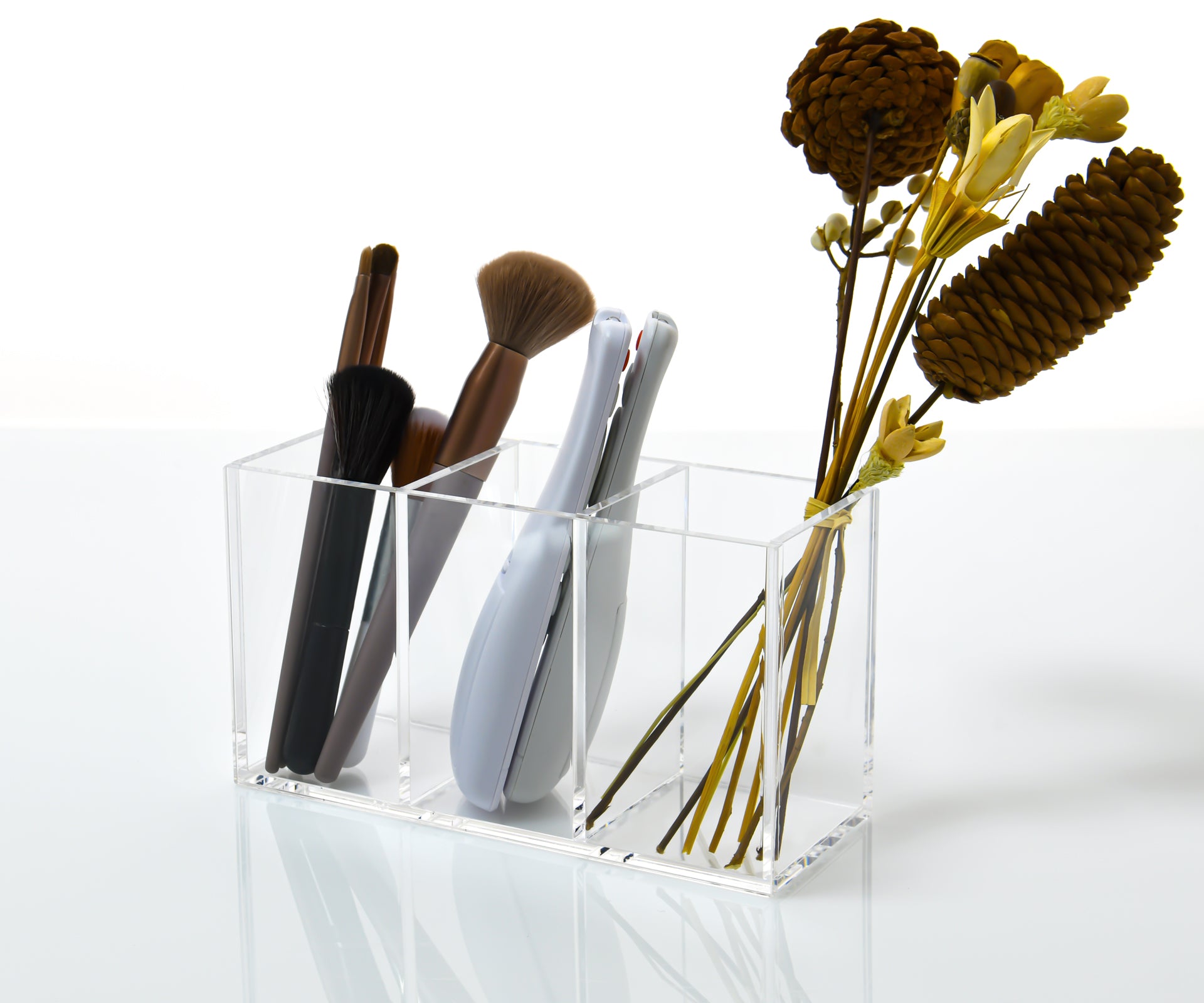 Three-compartment partition makes storage of items clear and easy to access.