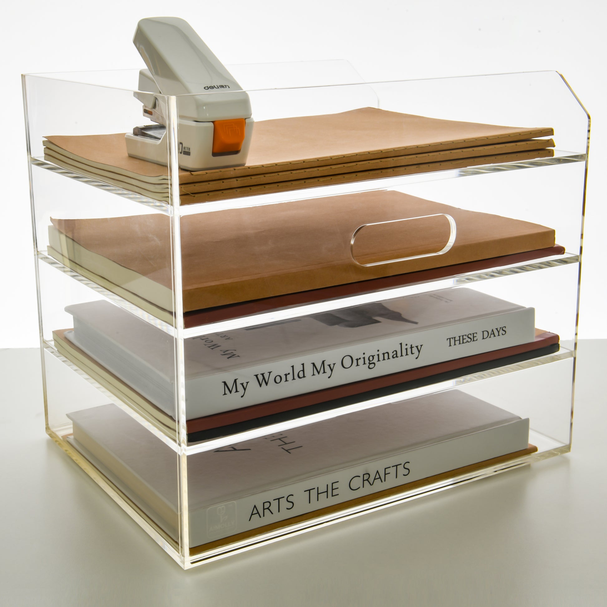 AIMOLLY Desktop file rack, transparent A4 folder storage box, business office storage rack, student test paper sorting rack, file box, multi-layer large-capacity bookshelf, simple and creative.(Model AML-052/053)