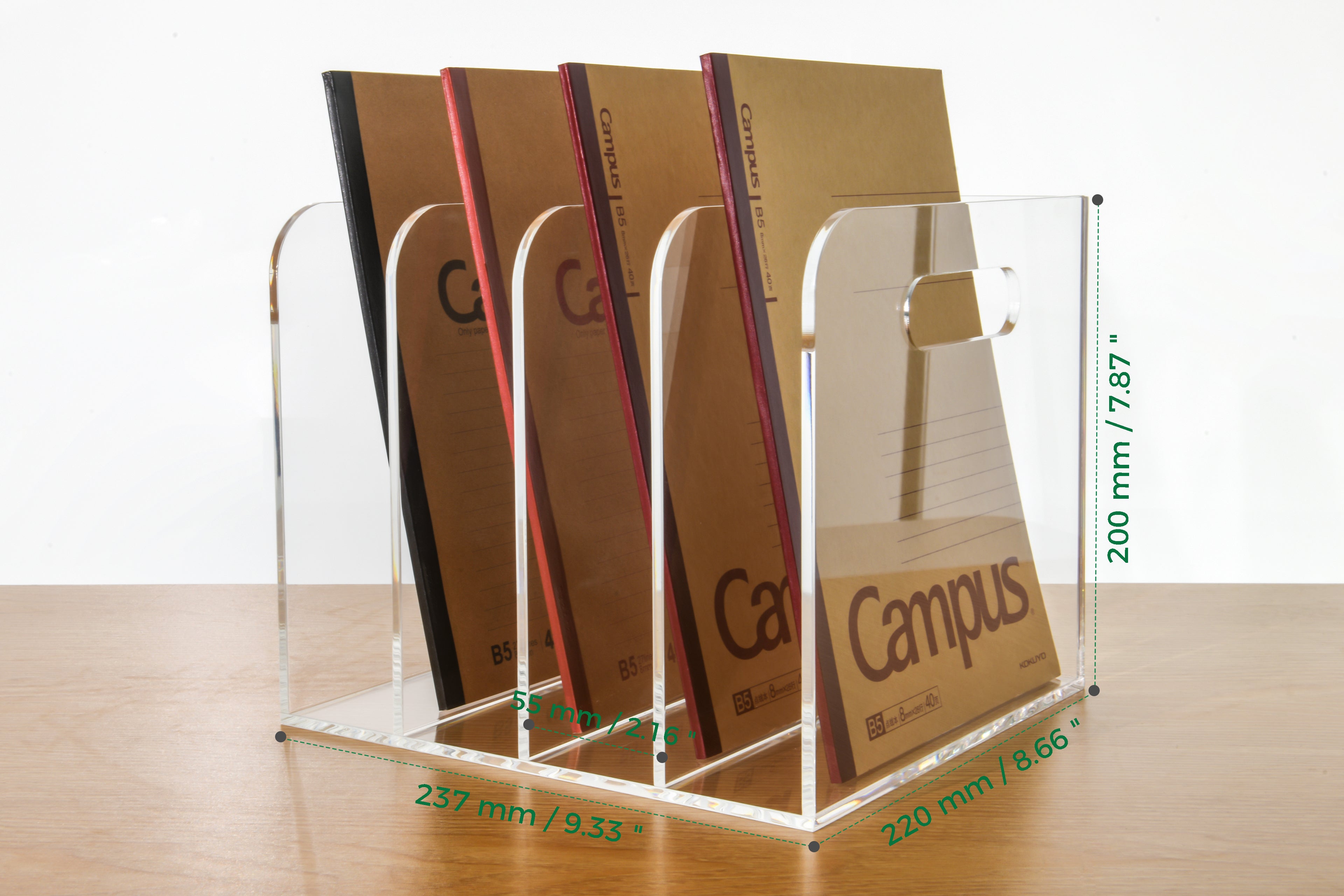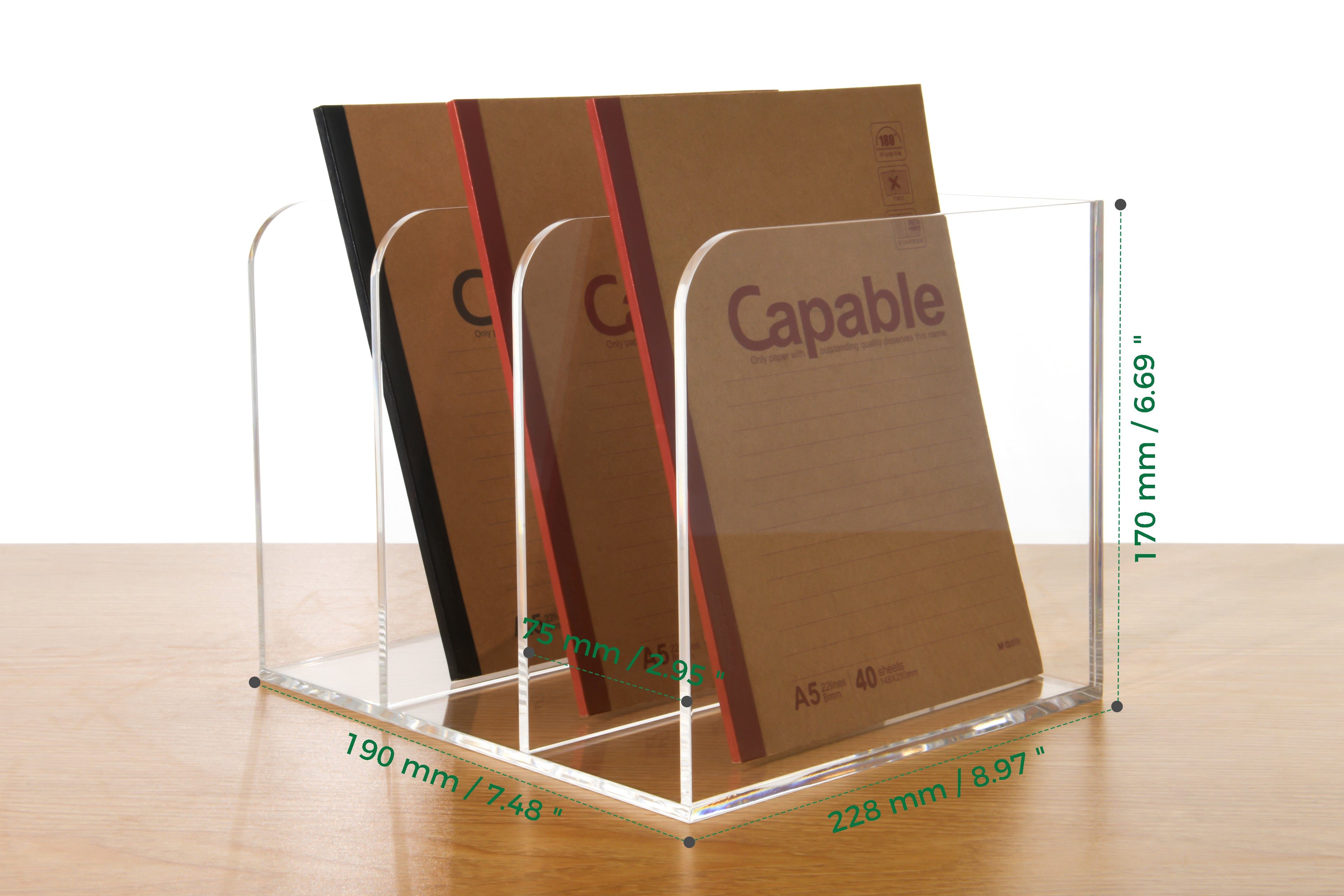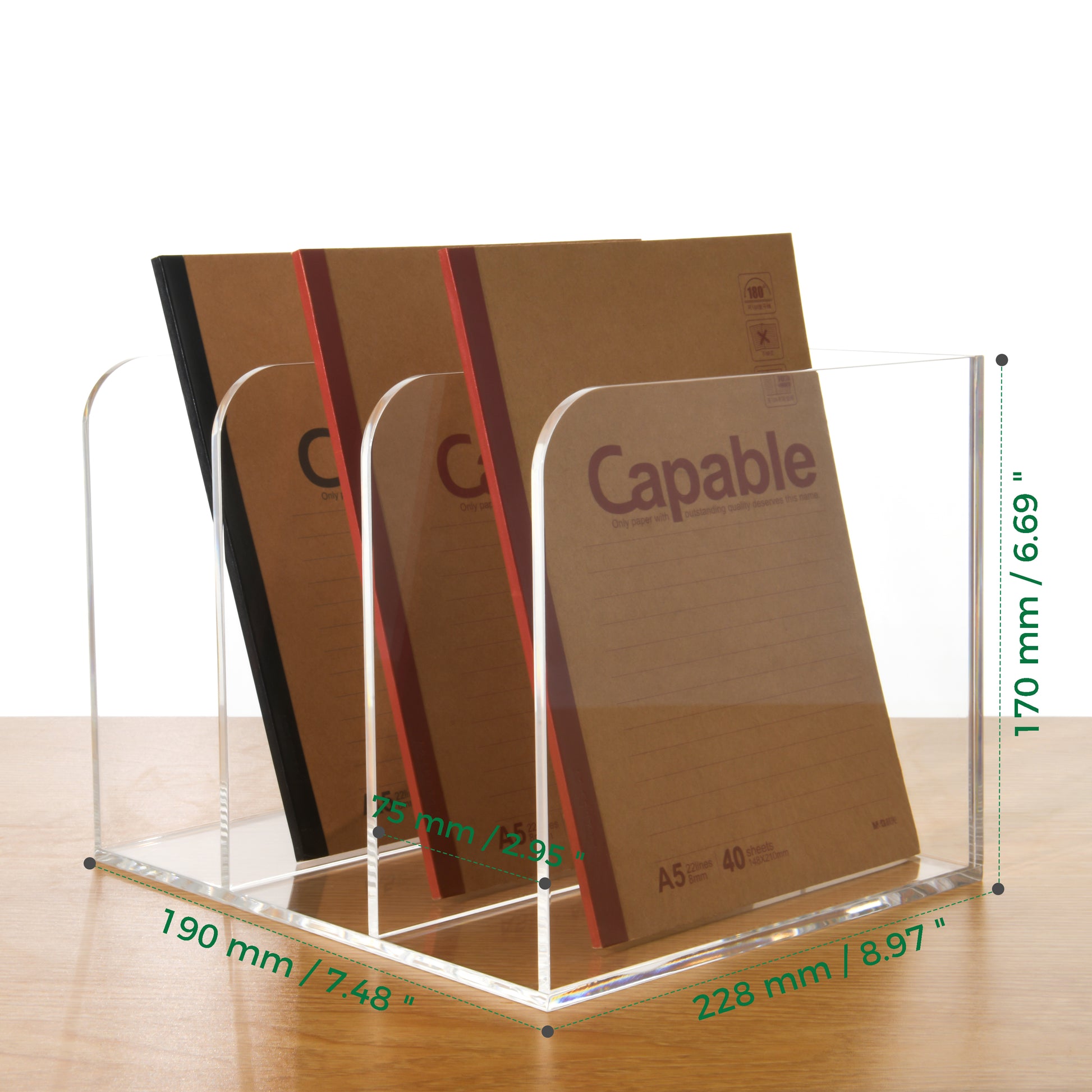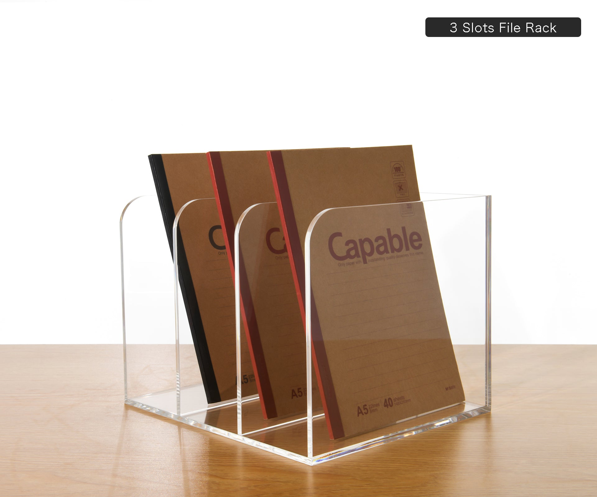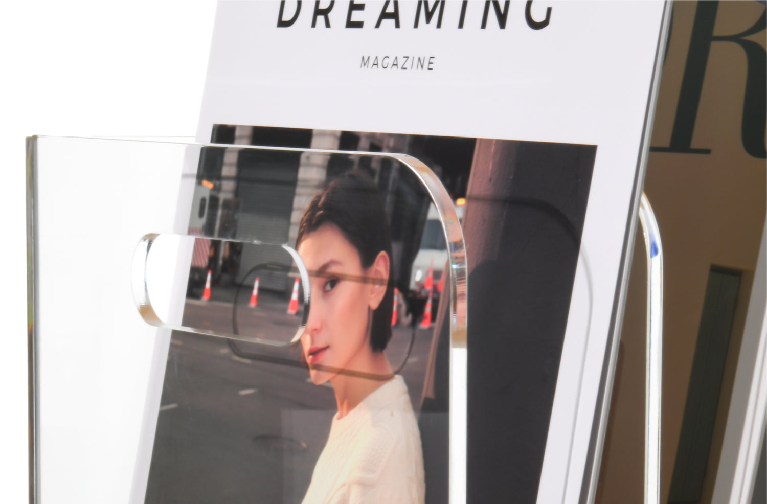 Our file racks are made of new high-quality acrylic material, which is extremely weather-resistant and UV-aging resistant. Made of 0.2 inch (5 mm) thickened acrylic, with a corner radius (R) ≥5mm to prevent hand scratches caused by friction.