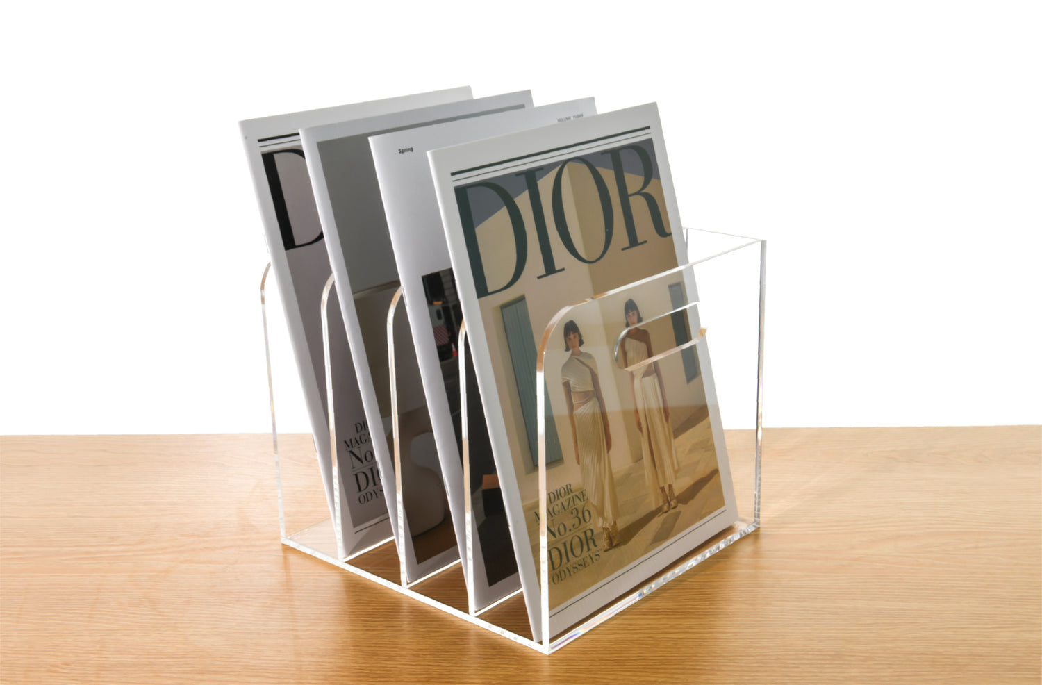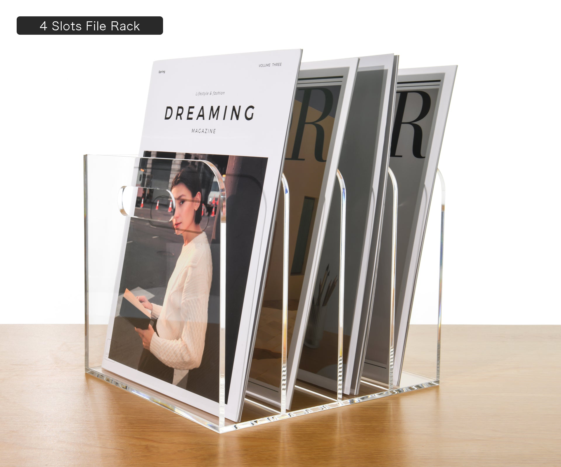 AIMOLLY transparent acrylic file rack - 3/4 vertical compartment desktop organizer, suitable for office and home, desk file storage rack(Model AML-056/057)