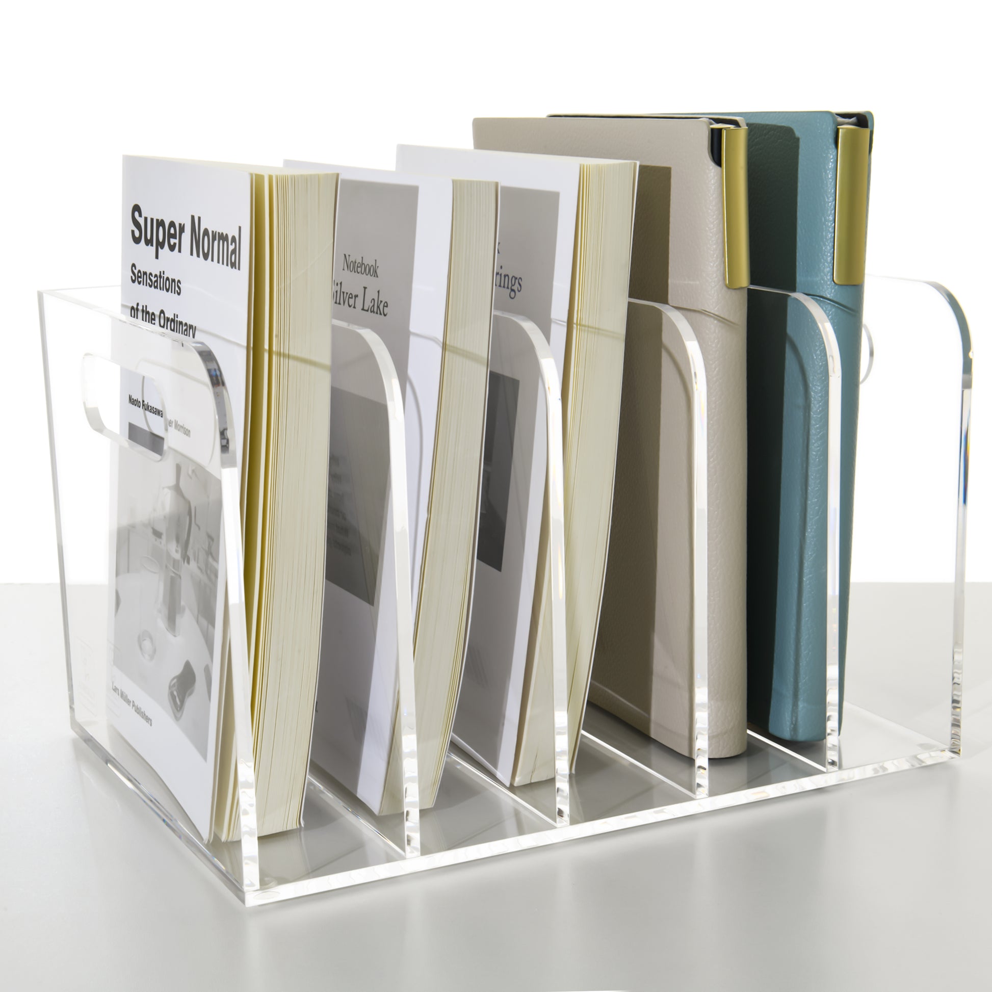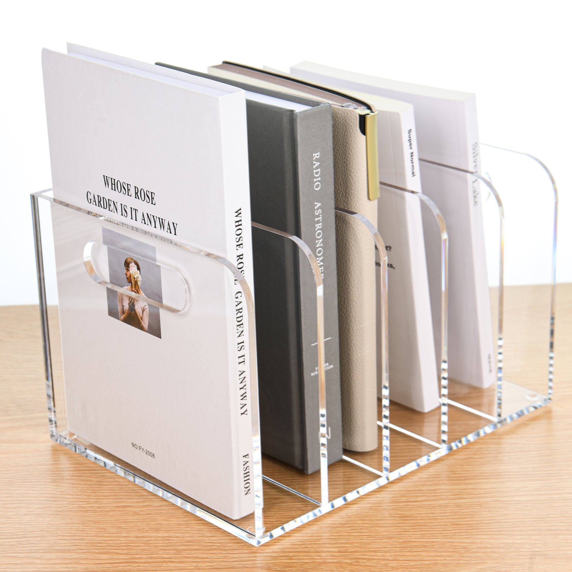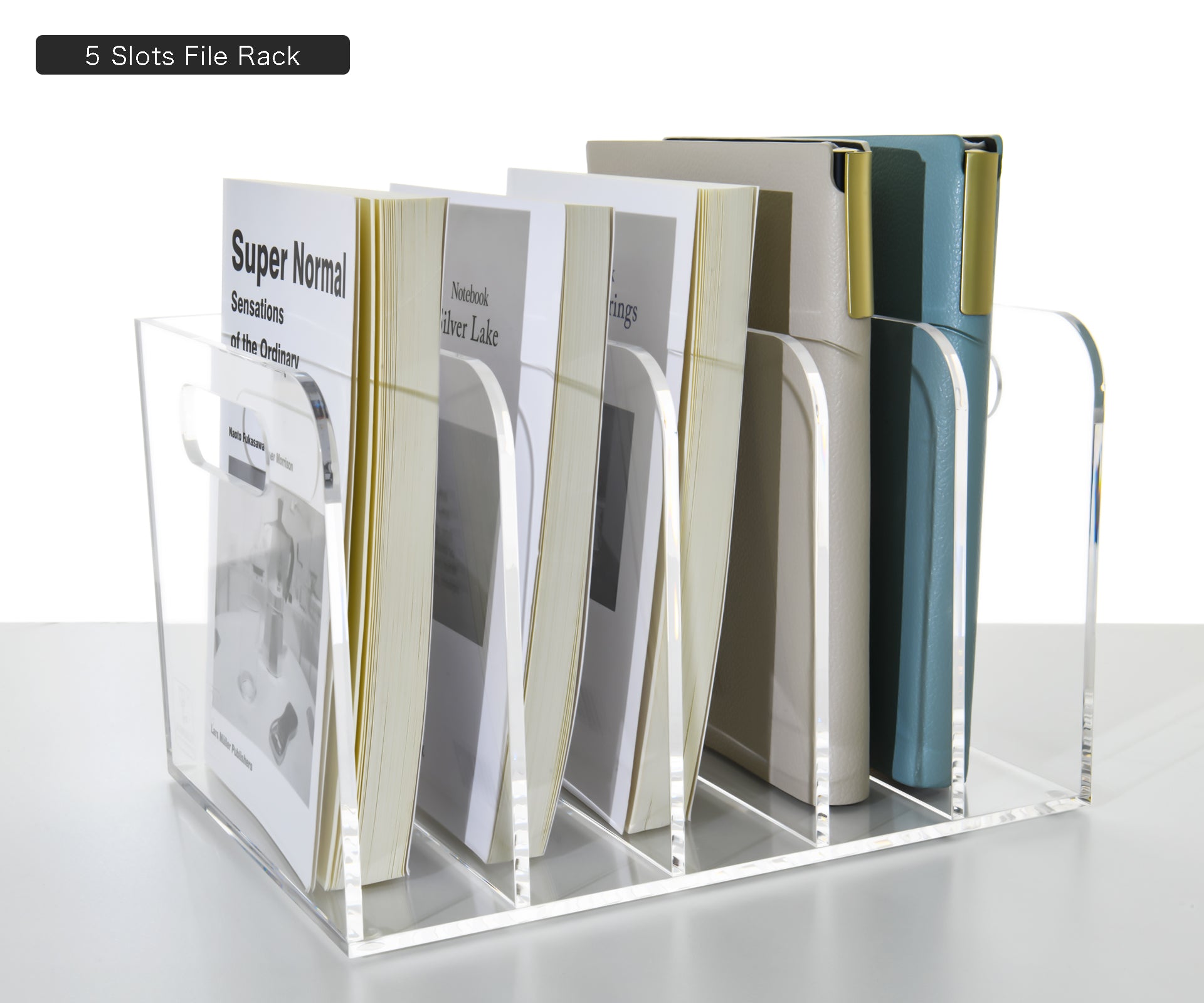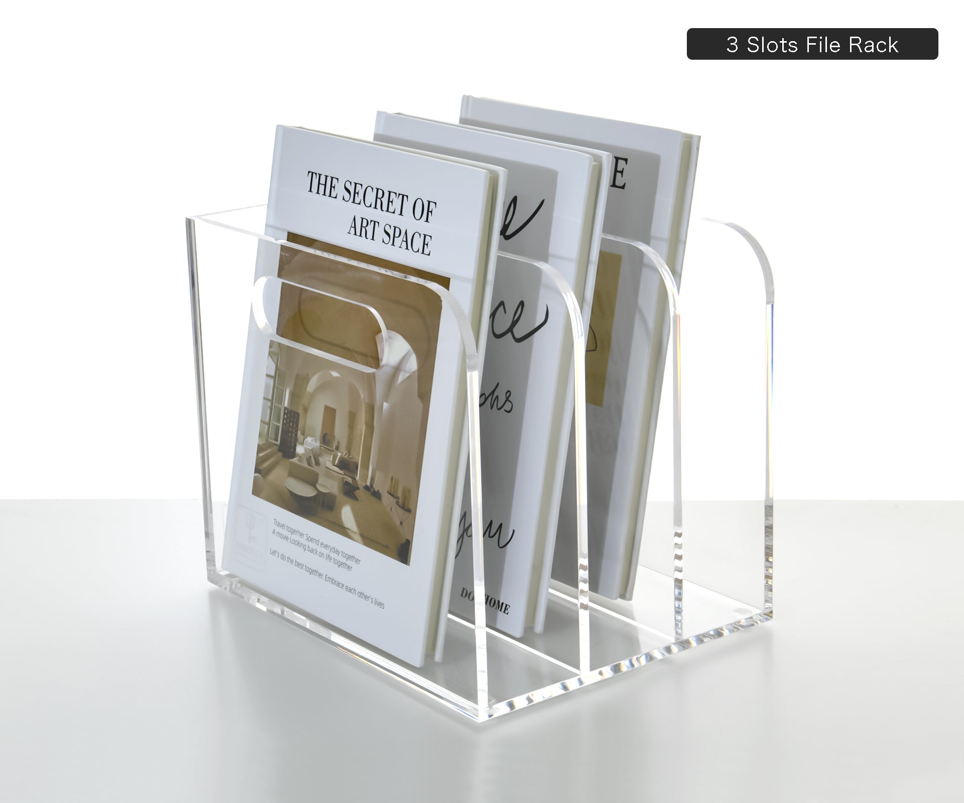 AIMOLLY transparent acrylic file rack - 3/5 vertical compartment desktop organizer, suitable for office and home, desk file storage rack(Model AML-005/006)