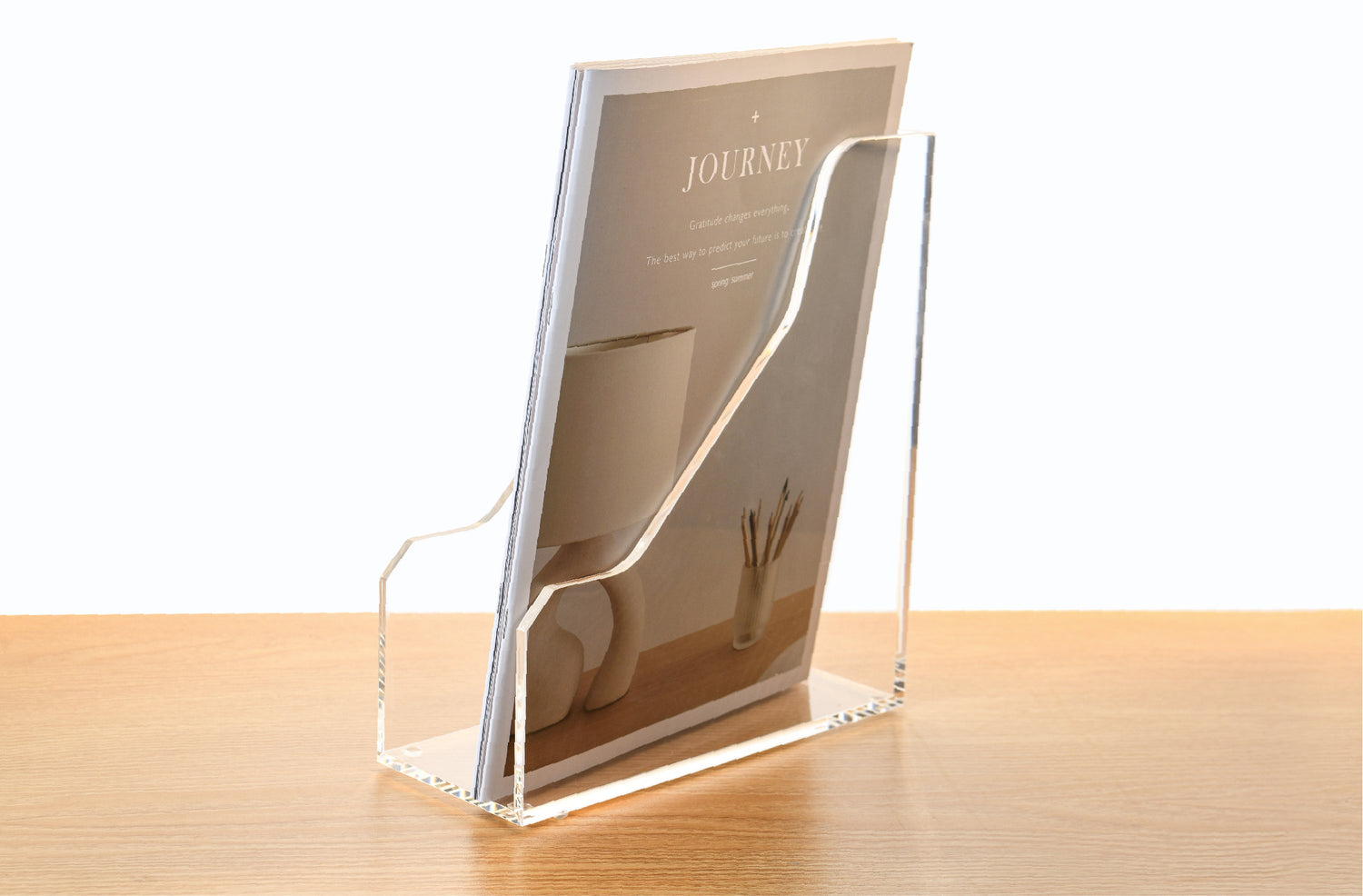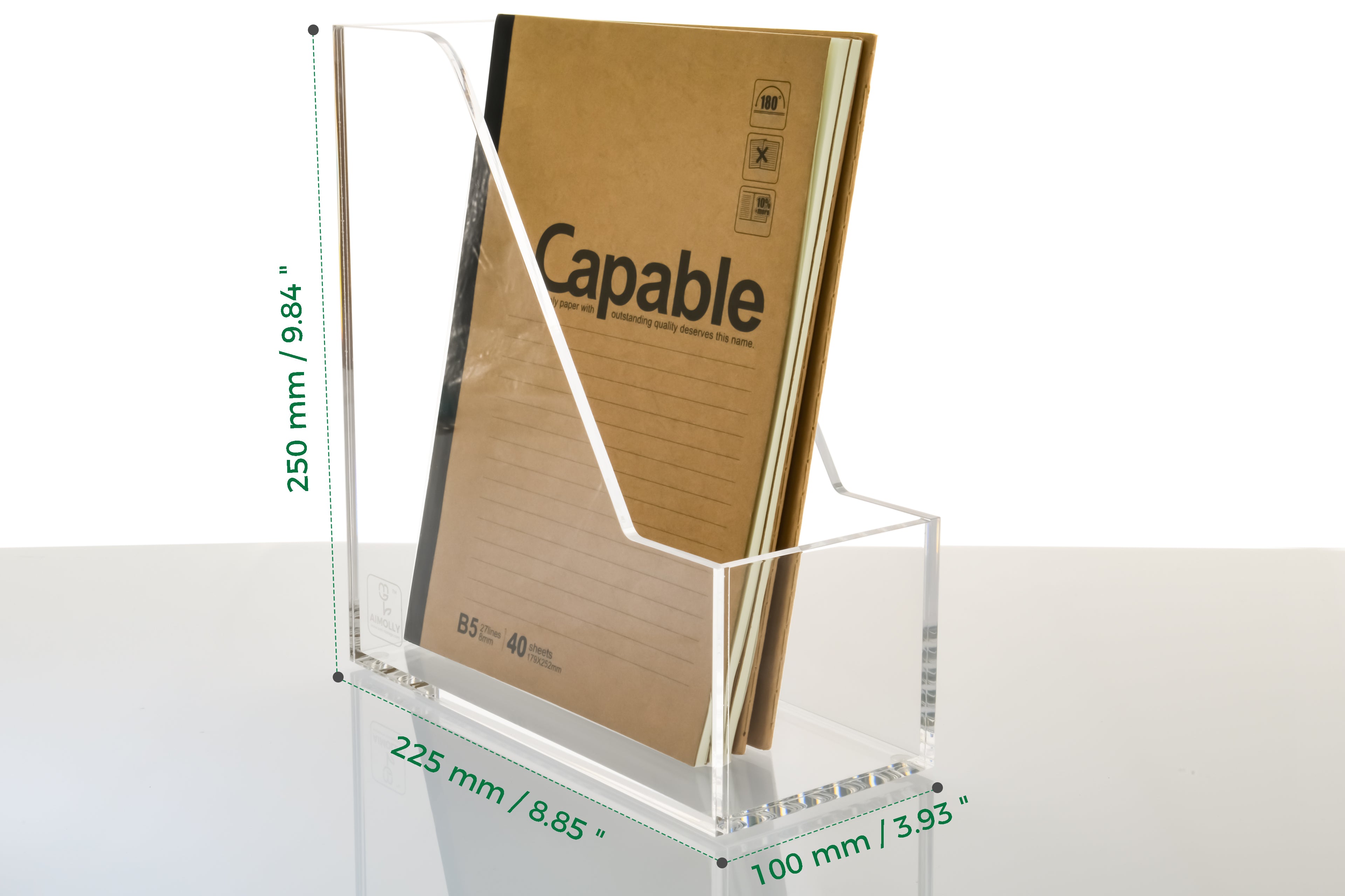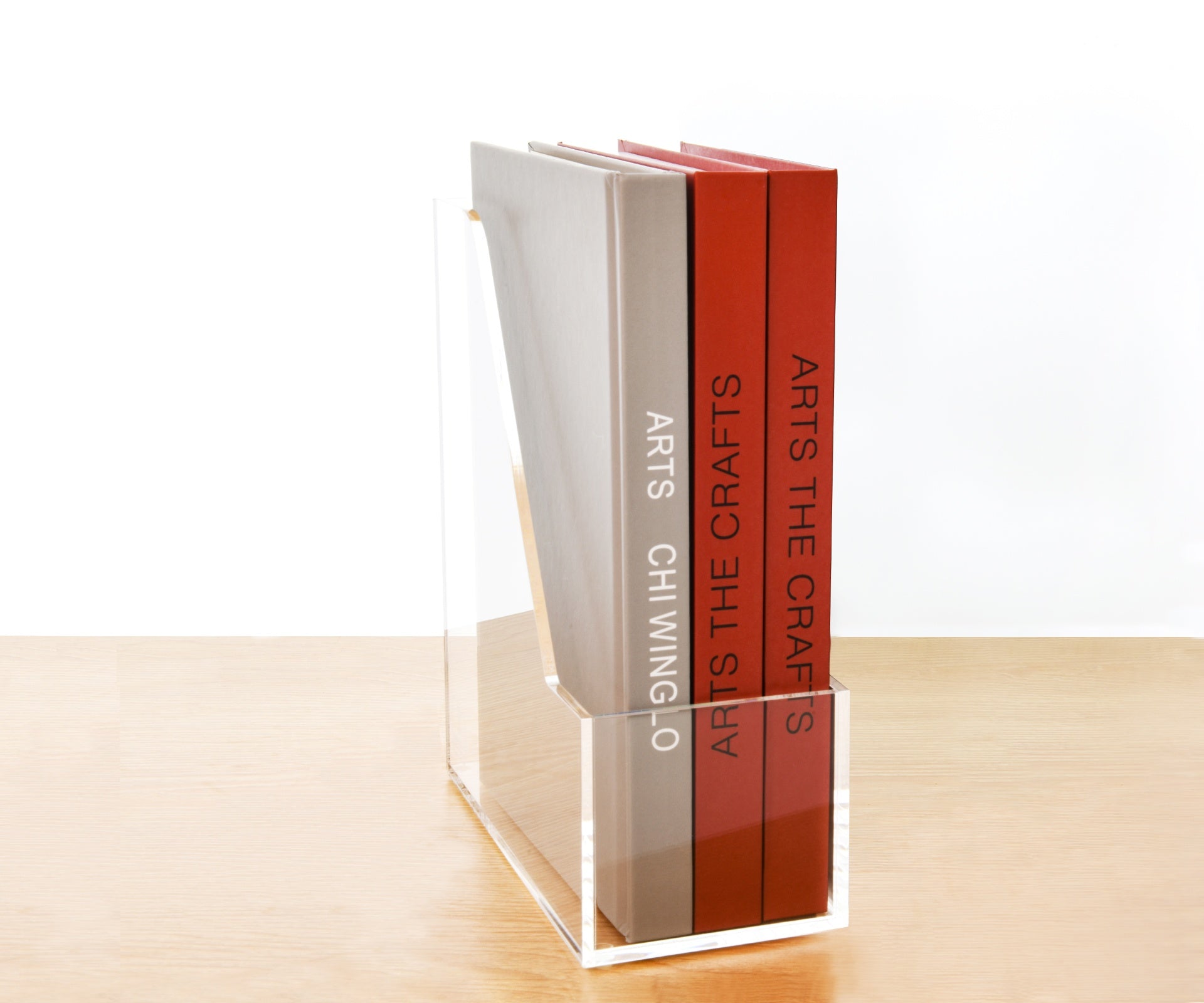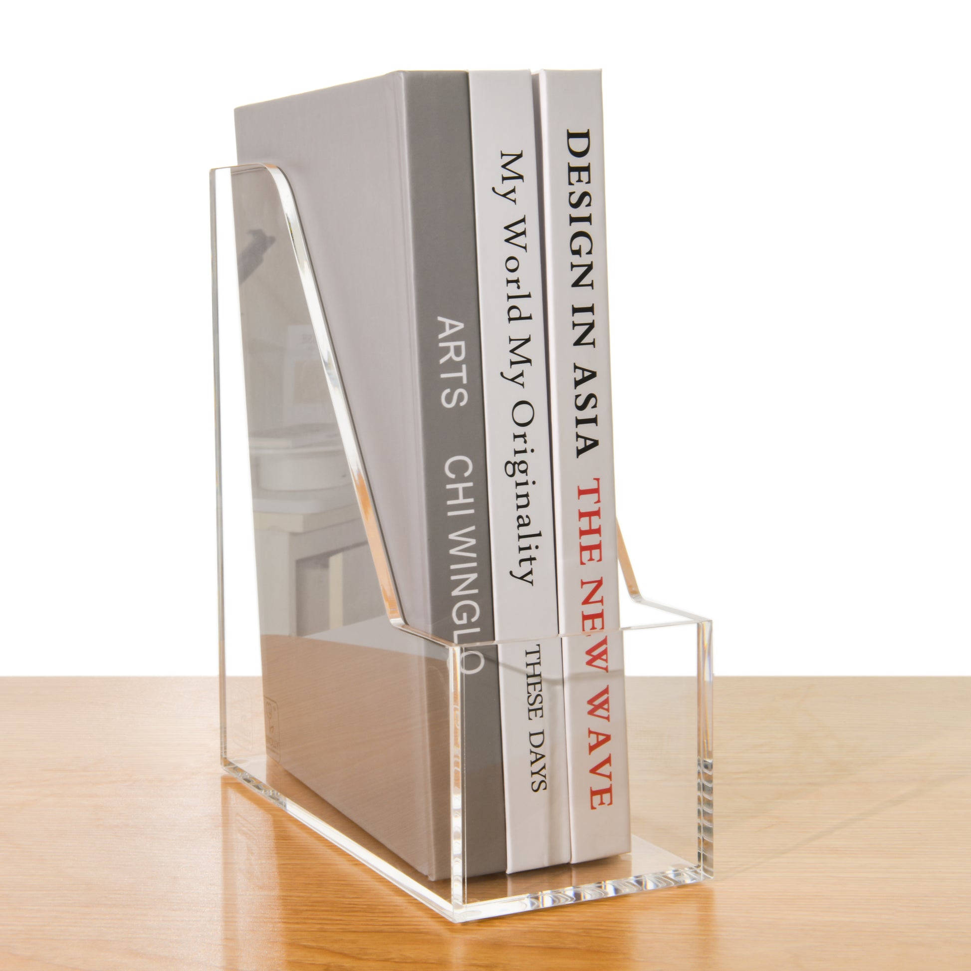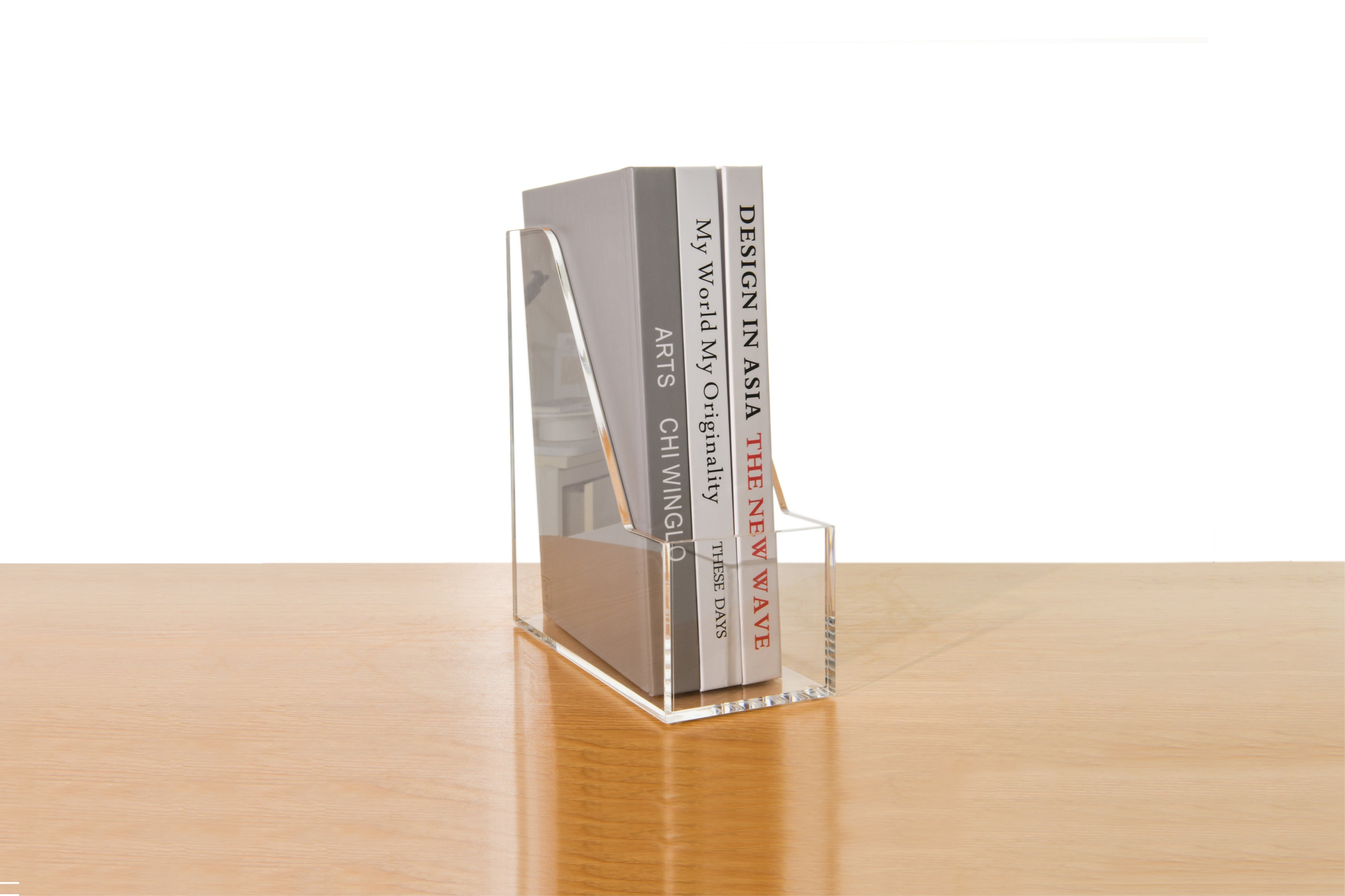 AIMOLLY Vertical Acrylic Magazine File Rack, Classroom Organization and Storage, Transparent Bookend File Sorter, Desktop File Organizer 1-Pack(Model AML-007/008)