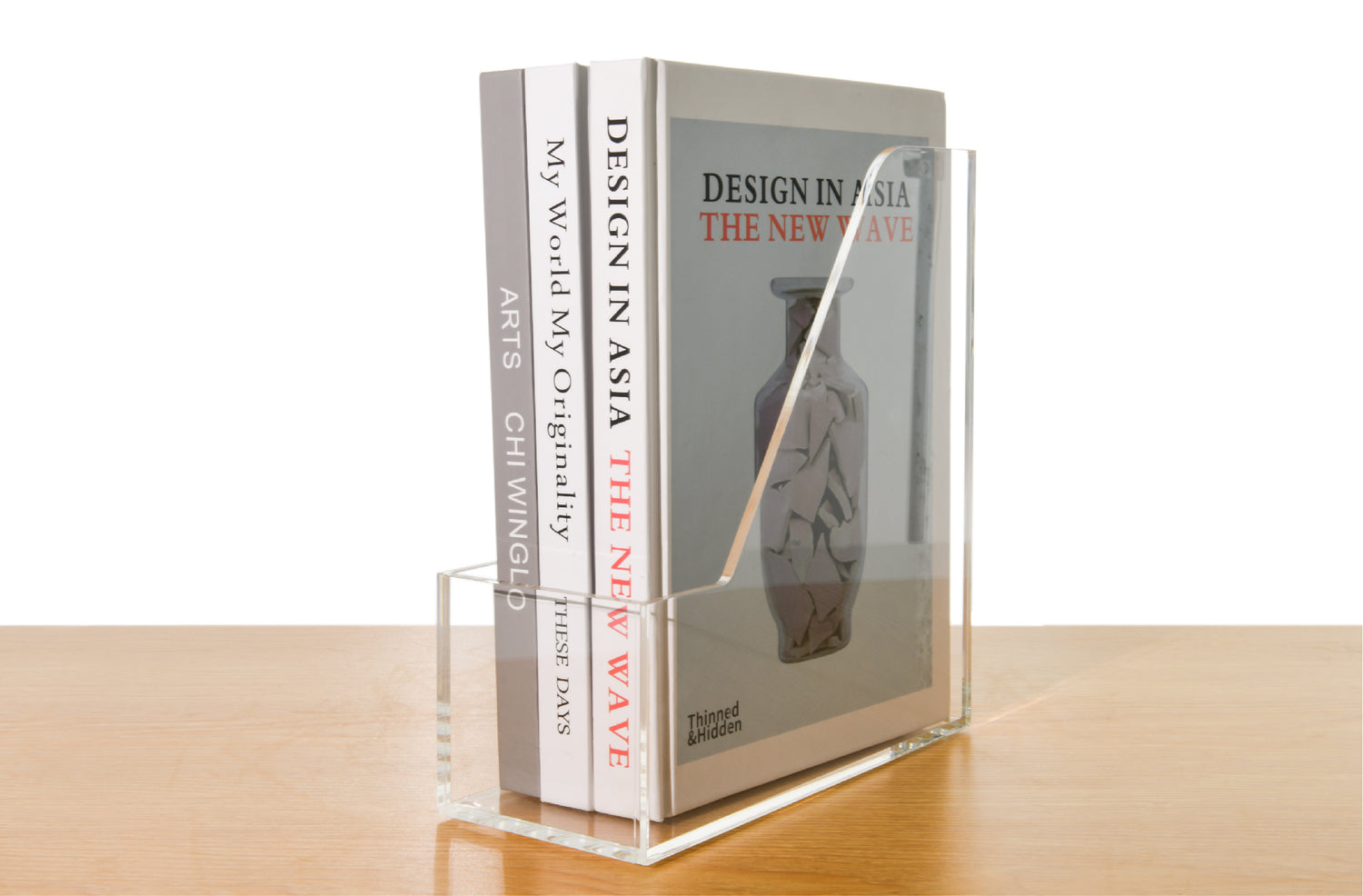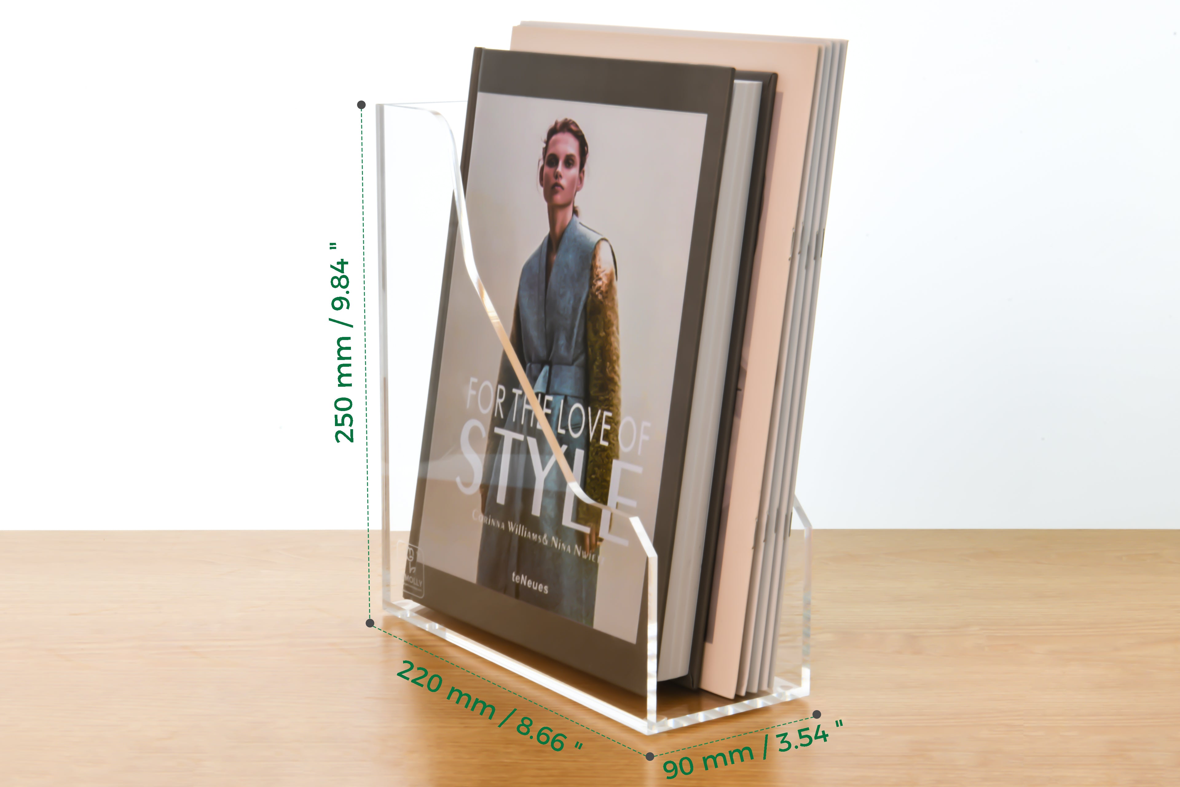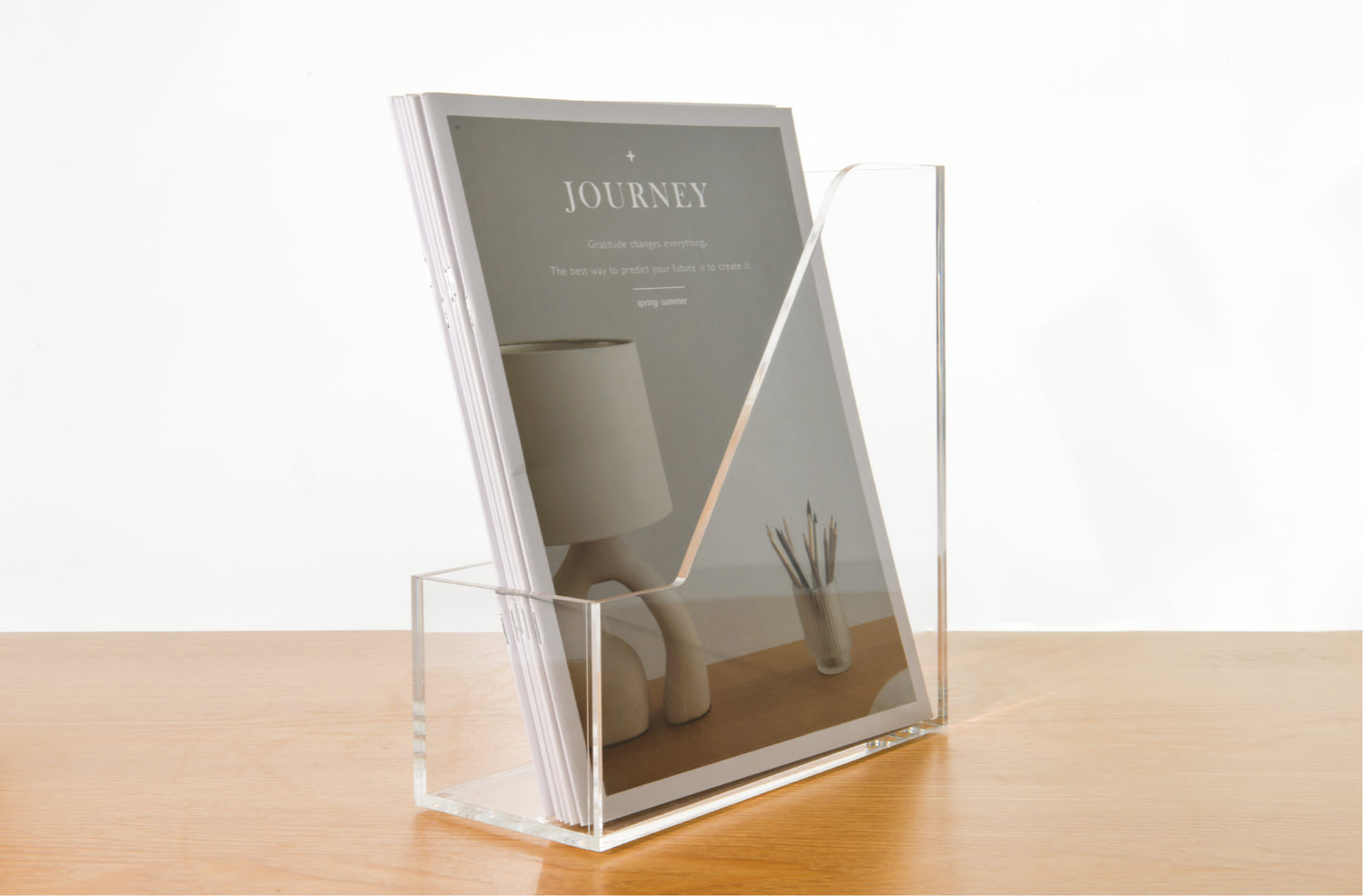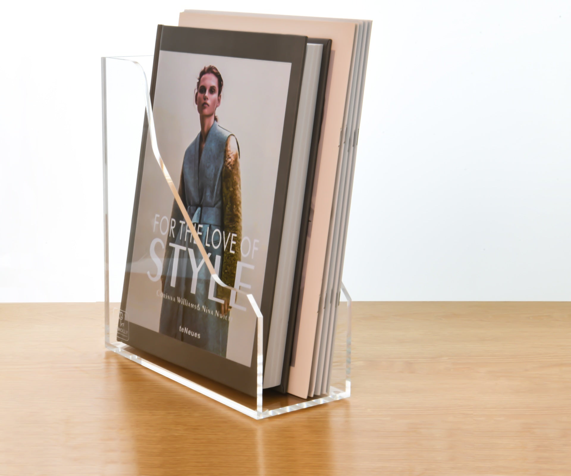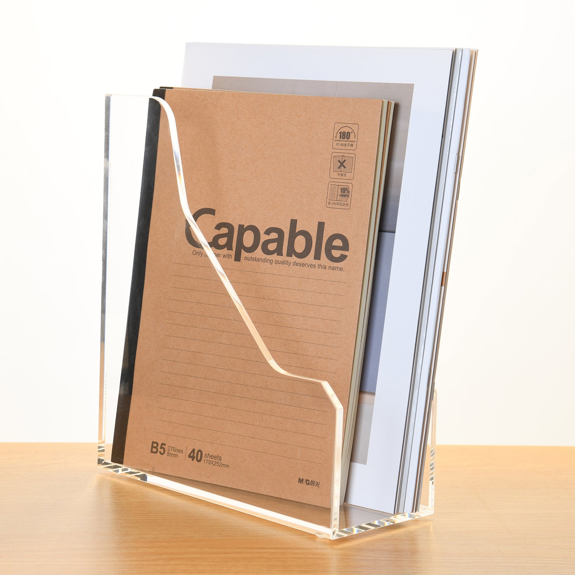 AIMOLLY Vertical Acrylic Magazine File Rack, Classroom Organization and Storage, Transparent Bookend File Sorter, Desktop File Organizer 1-Pack(Model AML-007/008)
