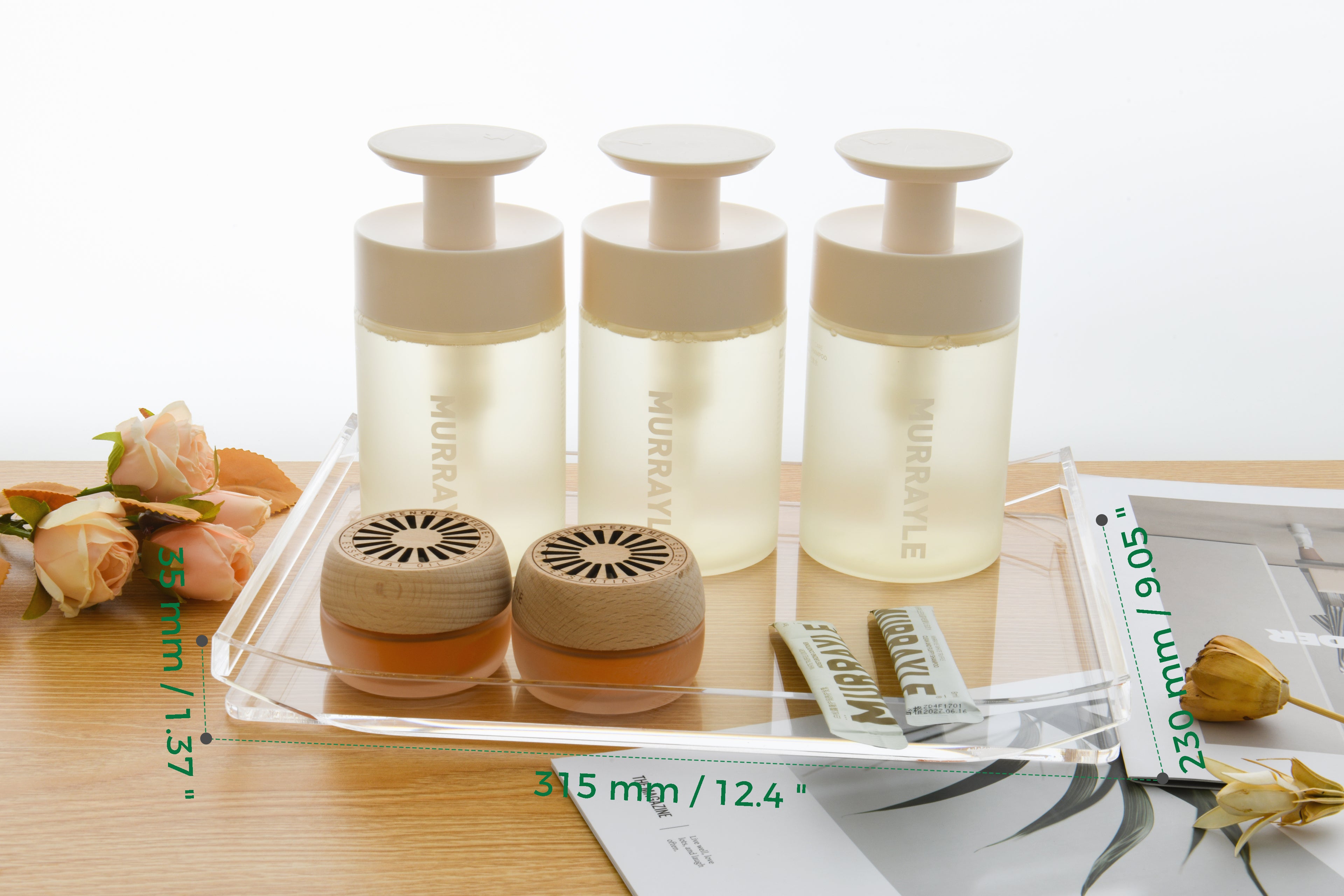 It is meticulously crafted from trans!barent acrylic material, featuring smooth overall lines anda simple yet stylish design. The smpoth curved design not only adds aesthletic appeal butalso eliminates the risk of bumps alid bruises that might be caused by sharp corners.