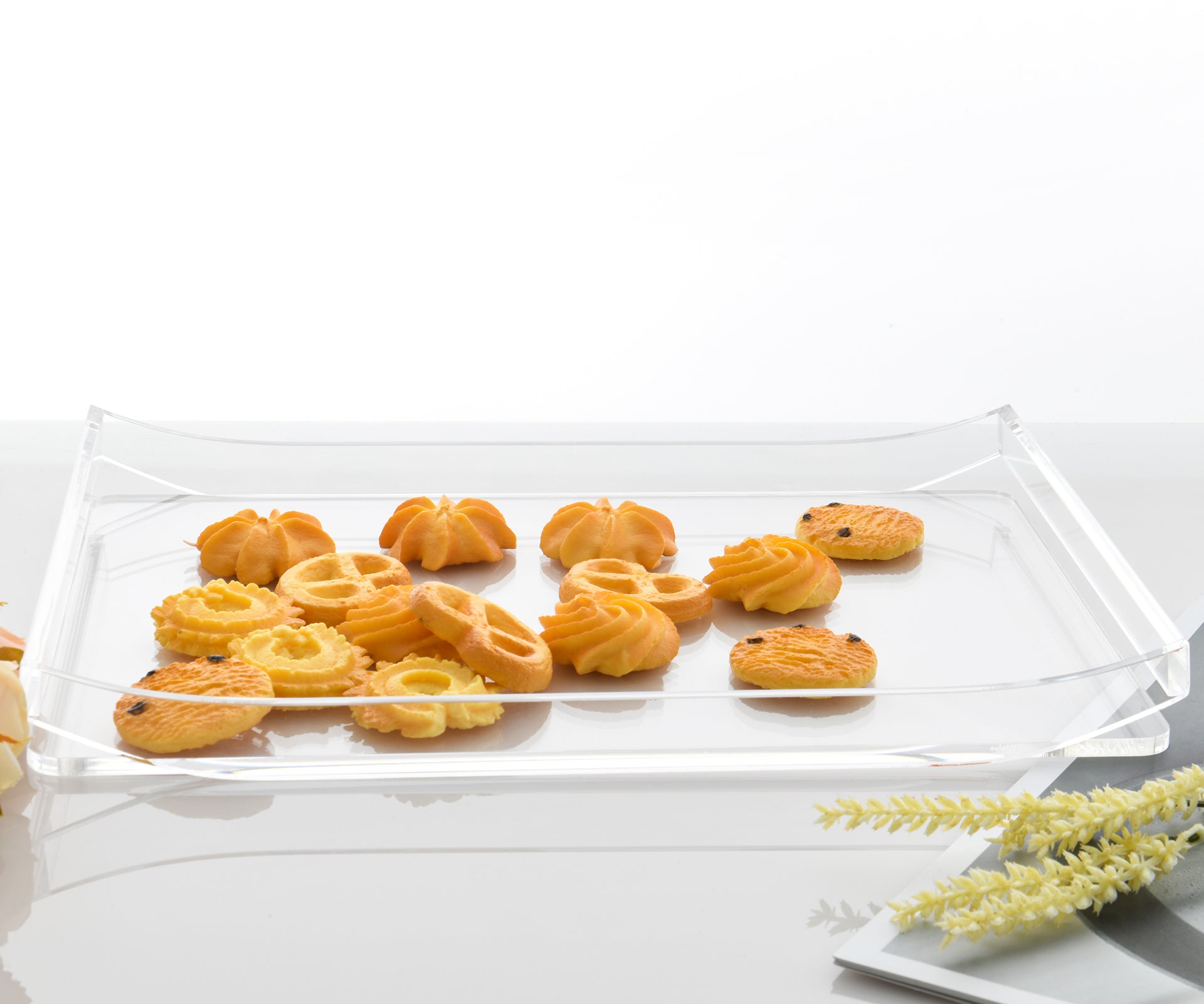 AIMOLLY's highly transparent and large-capacity boat-shaped acrylic storage tray is suitable for storage trays such as cosmetics, documents, stationery, and jewelry displays.(Model AML-028/029)